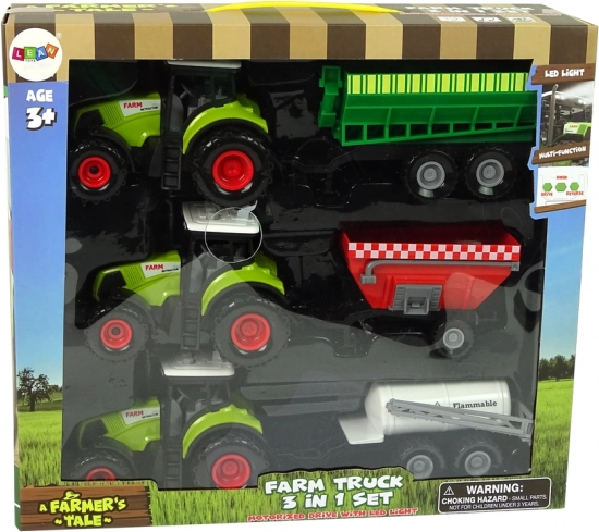 A kis gazdáknak készült szett három, részletesen kidolgozott traktort és három különböző utánfutót tartalmaz: víztartályt, gabonás platót és takarmányos kocsit. Játékos formában ismerteti meg a gyerekekkel, hogyan működnek a mezőgazdasági gépek és milyen feladatok zajlanak a farmon.