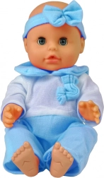 Kiváló minőségű anyagok garantálják a játékbiztonságot és a játék hosszú élettartamát. A baba kék pizsamát visel bájos masnival a fején, ami tökéletesen illik a megjelenéséhez.