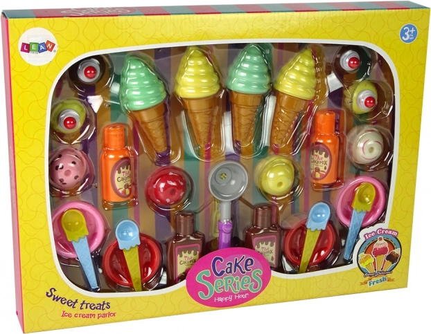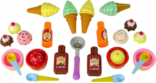 A desszertek készlete színes kehelyeket és fagylaltokat tartalmaz, melyek elbűvölik a gyerekeket. Ez a játék ideális gyerek összejövetelekre és ünnepségekre, ahol a gyerekek kis lakomát élvezhetnek a finomnak kinéző, pasztellszínű édességekkel, amelyek nagyon élethűek. Tartalmaz továbbá kiegészítőket, mint például kanálkák, poharak és öntetek, melyek segítenek megteremteni az édességek találkozójának hangulatát. A speciális fagylaltkanál segítségével a gyerek saját desszertjeit készítheti el.
