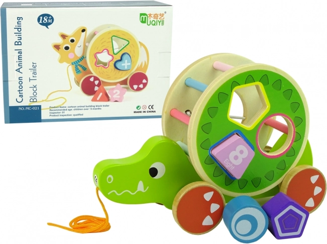 Fa húzogatós játék krokodil formával és válogatóval