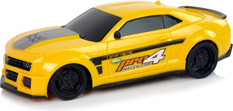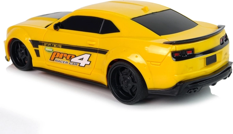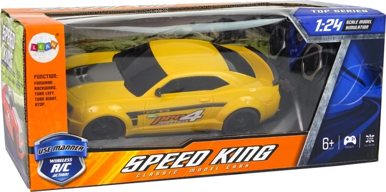 Ez a távirányítós sportautó szürke csíkkal a motorháztetőn és élénk sárga színével tűnik ki, amely nem kerüli el egyetlen versenyző figyelmét sem. Az 1:24 méretarányú modell élethű részleteket kínál, és a mellékelt távirányítóval egyértelmű, gördülékeny irányításra készült.