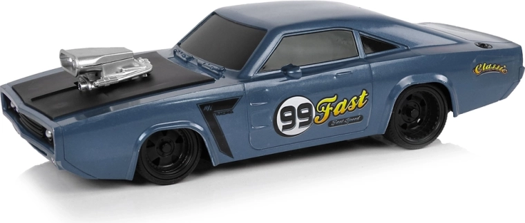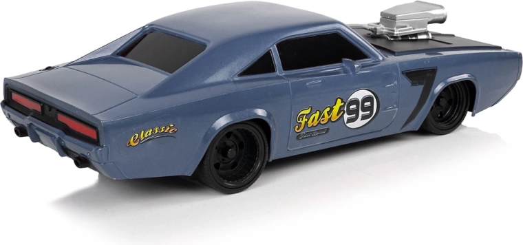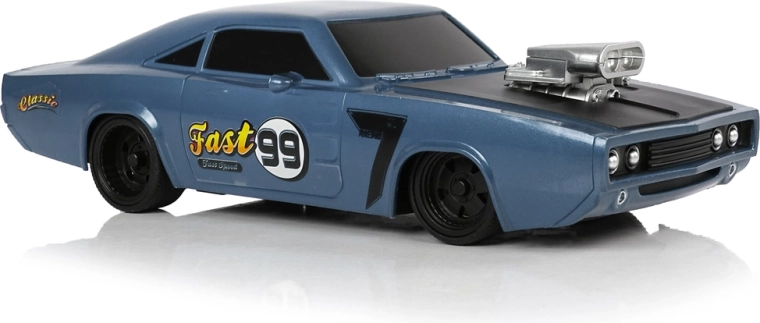 A jármű könnyű és masszív felépítésű, sportos dizájnnal, fekete elemmel a motorháztetőn és ezüst kompresszorral, amely karcos, harapós karaktert kölcsönöz. A gumibroncsok biztosítják az úttartást. A jármű irányítása remek szórakozás, különösen a legkisebbeknek, ezért a készletben található távirányító lehetővé teszi a kisautó irányítását két külön gombbal az előre/hátra és az oldalirányú mozgáshoz.