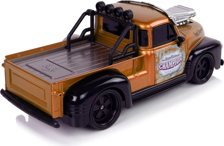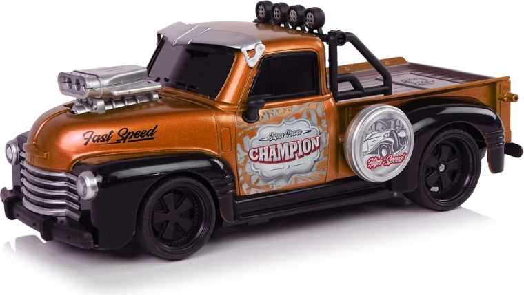 Az autó könnyű és masszív felépítésű, a sportos jelleget olyan elemek erősítik, mint a motorháztetőn lévő kompresszor vagy a matricák. A gumibroncsok biztos tapadást garantálnak vezetés közben. A készlethez tartozó távirányító két külön gombbal teszi lehetővé a kis autómodell irányítását: előre/hátra és oldalirányba.