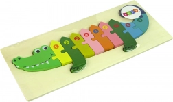 A fakrokodil számokkal remek fejlesztő játék, amely játékos formában segíti az 1-től 10-ig történő számolás elsajátítását. Minden elem egy számot visel, így a gyerekek gyakorolják a logikus gondolkodást, a finommotorikát és a kéz–szem koordinációt. Az élénk színek és a kellemes fa felület felfedezésre és újra meg újra való kirakásra ösztönöz.