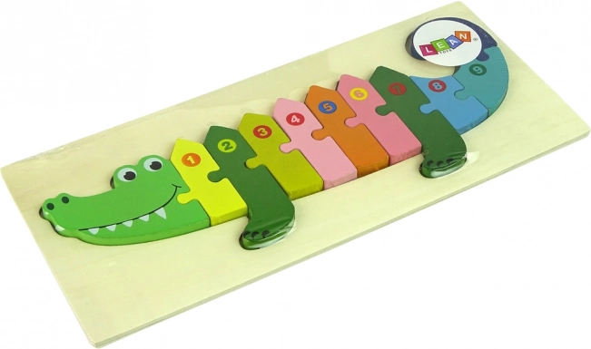 Szórakoztató, fából készült krokodil alakú kirakó, amely megtanítja a gyerekeket 1-től 10-ig számolni, és fejleszti a finommotorikát és a logikus gondolkodást. Minőségi fából készült, gondosan csiszolt elemekkel és biztonságos festékekkel. Ideális oktatójáték a legkisebbeknek, CE tanúsítvánnyal és EN 71 szabvánnyal.