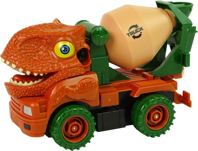 Szórakoztató építőkészlet kis barkácsolóknak: dinoszauruszos betonkeverő, amely csavarhúzóval szétszedhető és újra összerakható. Fejleszti a finommotorikát, a logikus gondolkodást és a kreatív játékot. A lendkerekes meghajtásnak köszönhetően az autó hátrahúzás után magától elindul, a forgó keverődobb pedig élethű hatást kelt.