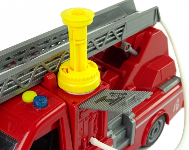 A tűzoltóautó felszerelve van egy rendszerrel, amely lehetővé teszi a vízpermetezést a tömlőből, így valósághű játékélményt nyújt gyerekeknek.