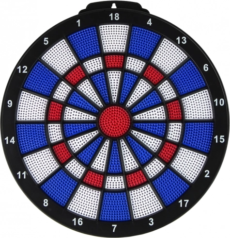 Fekete, kék, piros és fehér körminták számokkal kiegészítve a szórakoztató játék érdekében.