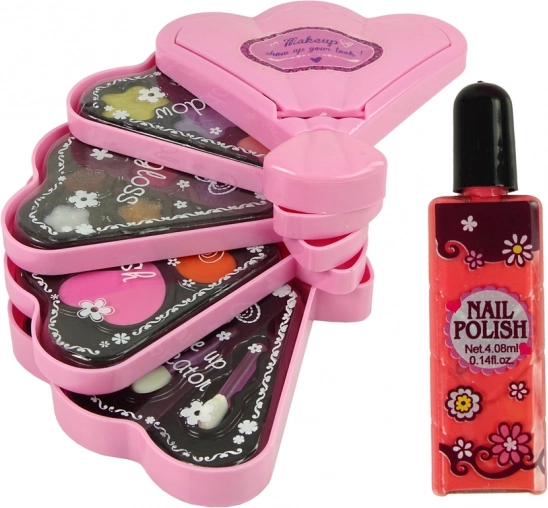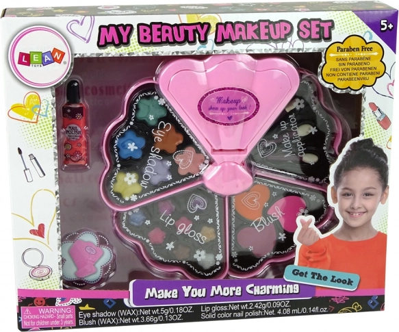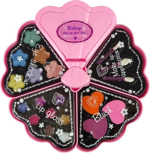 Ez a csigahéj alakú kozmetikai készlet ideális a kis kezdő sminkesek számára. Tartalmaz hat szemhéjpúdert, három arcpirosítót, nyolc ajakfényt, körömlakkot és ecseteket az alkalmazáshoz. Minden réteg egyedi kozmetikai lehetőségeket rejt, amelyek lehetővé teszik, hogy a lányok saját stílusukat alakítsák ki. Méretének köszönhetően könnyű kéznél tartani a készletet.