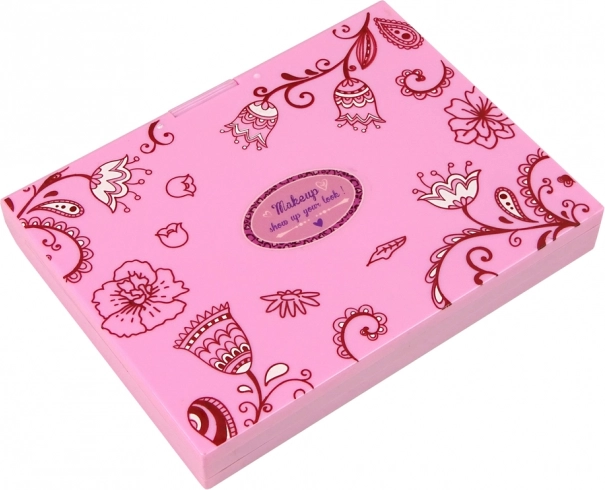 A rózsaszín kozmetikai doboz finom vörös virágokkal nagyszerű kiegészítője minden gyerekszobának.