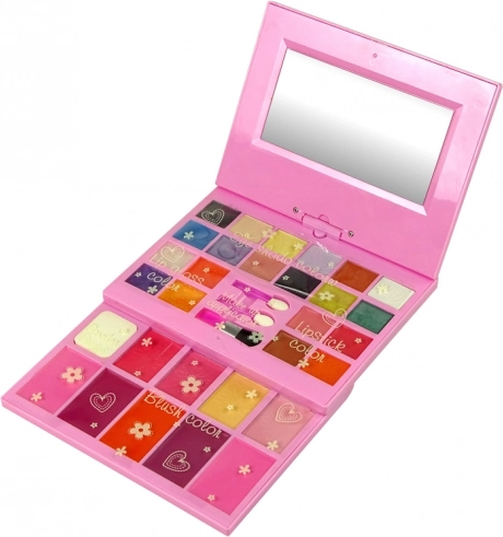 A palettában egy beépített forgatható tükör is található, amely ideális a pontos smink alkalmazásához. A kozmetikumok biztonságosak a gyermekbőr számára, és egyszerűen eltávolíthatók kendővel vagy vattával, szappanos meleg vízzel.