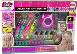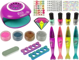 .A körmök hosszának és formájának kiegyenlítése után a gyémánt alakú reszelővel vidd fel a választott színt. A következő lépés a kéz behelyezése a speciális körömlámpába. Behelyezés után a fény felkapcsol, akárcsak az igazi eszköznél. A tollak pontos mintarajzolást tesznek lehetővé, és két színben érkeznek. A minták festésével a kislány fejleszti pontosságát és kialakítja saját stílusát. A matricák, gyémántok és csillámok egyediséget és ragyogást adnak.