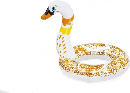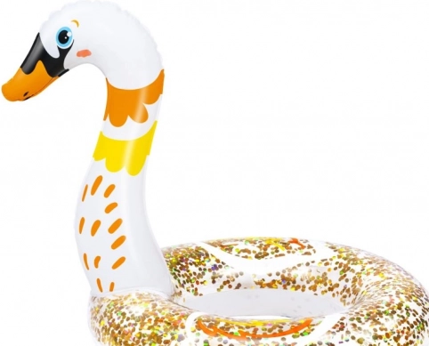 Adj több örömöt és magabiztosságot gyermekednek a vízben ezzel az elegáns hattyú formájú felfújható úszógumival. A belső, fényesen csillogó flitterek első pillantásra megragadják a tekintetet, és egyben javítják a gyerek láthatóságát a vízben. A karika tartós PVC-ből készült, amely bírja a nyári pancsolást a medencénél és a strandon is.