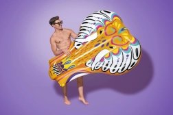 Vidám, művészi grafika élénk színekben, amely kitűnik a medencénél, és nyári hangulatot kölcsönöz minden fürdőzésnek.