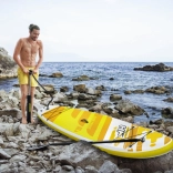 A szettben nemcsak a paddleboardot találja, hanem könnyű evezőt is, amely jelentősen megkönnyíti a haladást a víz felszínén. A levehető uszony növeli a stabilitást és a sebességet, míg az uszony eltávolítása megkönnyíti a tárolást és a szállítást. Emellett a szett része egy biztonsági póráz, amely gondoskodik róla, hogy sose kerüljön messzire a deszkájától, valamint egy kényelmes hátizsák a teljes felszerelés egyszerű hordozásához.