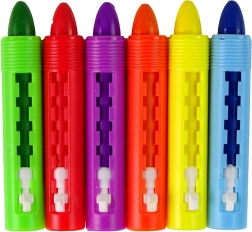 Minden kréta műanyag burkolattal védett, amely megakadályozza a szennyeződést, és a tologató lehetővé teszi a kréta hosszának szabályozását. 3 éves kortól ideális.