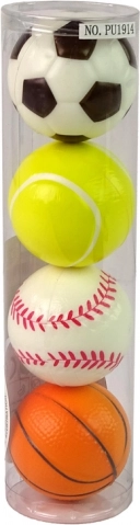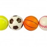 Szórakoztató és biztonságos, négy puha labdából álló készlet gyerekeknek, amely támogatja a mozgást, a kinti és benti játékot, valamint fejleszti a finommotorikát. A foci, golf, tenisz és kosárlabda sportok által inspirált, színes labdák könnyűek, kellemes tapintásúak, és 6 éves kortól alkalmasak.