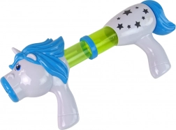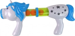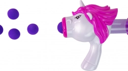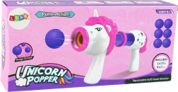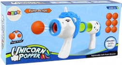 A bájos, egyszarvú alakú pisztoly rengeteg örömöt és biztonságos, akciódús szórakozást nyújt. Csak helyezd a habgolyót az átlátszó tárba, pumpálj előre–hátra mozdulattal – és a golyó kilő az egyszarvú szájából. A puha hablövedékek kíméletesek, gyerekjátékra alkalmasak.