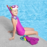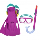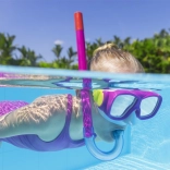 A Bestway teljes búvárkészlete 7 éves kortól tartalmaz egy maszkot edzett üvegnek köszönhető biztonságos látótérrel, egy kényelmes, latexmentes snorkelt és állítható uszonyokat. A UV-védelemnek és a szorosan illeszkedő peremnek köszönhetően a maszk kiválóan tapad az arcra és megakadályozza a víz bejutását. Ideális rekreációs snorkelezéshez és a víz alatti világ felfedezéséhez.