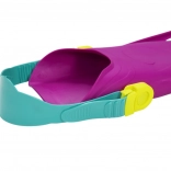 Élvezze a vízi élményeket kényelemmel és magabiztossággal. Ez a színes szett ötvözi az edzett üveg biztonságát, a maszk kényelmes tömítését és a könnyű légzést az ergonomikus snorkelen keresztül. Az állítható sarokpántos uszonyok a lábmérethez igazodnak, és javítják a hajtóerőt és a stabilitást a vízben.