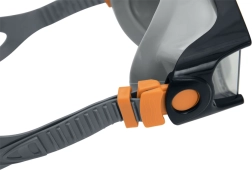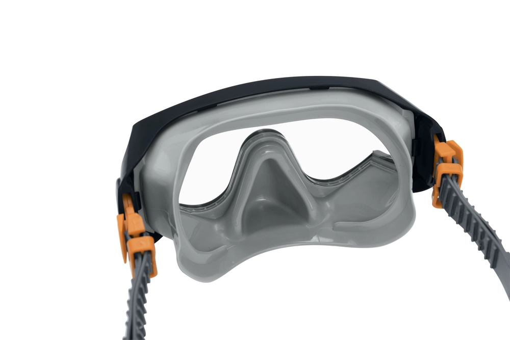 A maszk állítható pántja és a snorkelklipsz lehetővé teszi a tökéletes illeszkedést különböző arctípusokhoz.