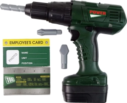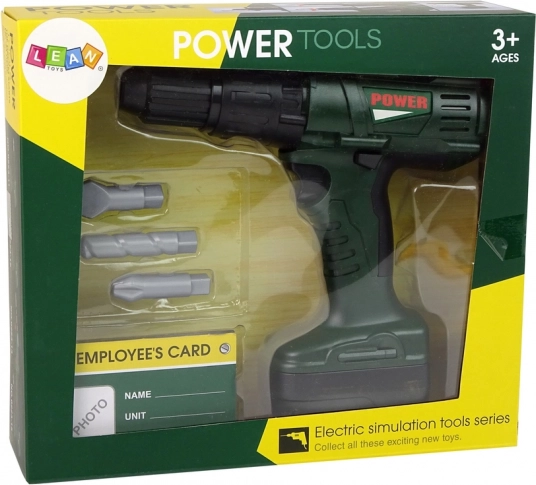 A fúró a ravasz megnyomásával működik. Az egész szórakozást a készülék valósághű hangja kíséri. Most a kisfiúk biztonságosan játszhatnak a profi csavarozással. A csavarozás és kicsavarozás végtelen lehet, a cserélhető fúrófejek pedig még élvezetesebbé teszik a játékot.