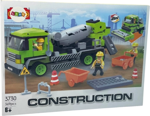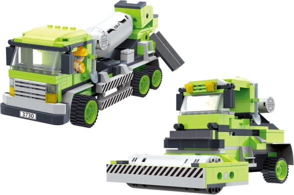 A kockák tartós műanyagból készülnek. Örömet okoz a sok mozgó elem és az önálló alkotás lehetősége. A következő lépés a játék, amelyben a kész járművekből saját építési területet alakíthat ki. A forgó "dobbal" rendelkező betonkeverő, nyíló ajtókkal vagy a forgó hengerművel rendelkező jármű hosszan leköti a gyermeket!