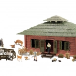 A nyitható ajtajú és ablakú pajta kényelmes otthont kínál a figuráidnak. Az ól mérete és a farm elrendezése csak a te döntésedtől és kreativitásodtól függ. Két farmer gondoskodik a rendezettségről, és minden állatnak meglesz a maga helye.