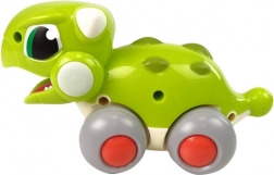 Zöld dinoszaurusz kerekeken – nyomd és menj játék gyerekeknek