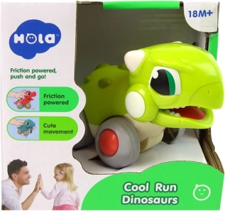 Kompakt méretének köszönhetően a dinoszaurusz könnyen tartható a kis kezekben, és simán gurul a sík felületeken, miközben az akadályoknál megáll. A játék támogatja a finom- és nagymozgások fejlődését, a formák és színek érzékelését, valamint a térbeli tájékozódást.