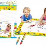 Az Óriás Vízrajz Szőnyeg egyszerű funkciójával és korlátlan szórakozással kiemelkedik. Csak nedvesítsd meg a ceruzát, amellyel mintákat rajzolhatsz, amelyek rövid idő elteltével eltűnnek, így a szőnyeg újra és újra használható. Könnyű, kompakt és vízálló, így nemcsak otthon, hanem a parkban vagy nyaraláson is ideális.