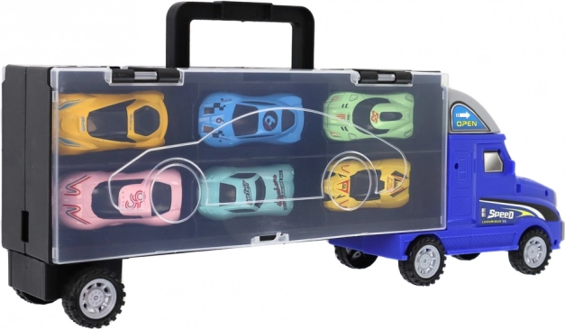 Max Speed Teherautó szórakozást kínál minden kis autórajongónak. A készlet tartalmaz 6 versenyautót és egy speciális szállító utánfutót átlátszó falakkal, amelyek egyszerű hozzáférést biztosítanak a járművekhez. Az ergonomikus fogantyú révén könnyedén hordozhatja a játékot bárhová.