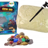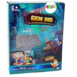 A kisgyermek feladata, hogy a gipszből 3 eszköz segítségével kiássa és felfedezze a készletben rejtőző drágaköveket.