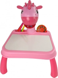 Vetíts, rajzolj, alkoss! A rózsaszín, zsiráfos vetítős rajzasztal megkönnyíti a gyerekek első lépéseit a rajzolásban. Elég behelyezni a három lemez egyikét (összesen 24 kép), bekapcsolni a fényt és beállítani az élességet – a körvonalak a felületre vetülnek, a gyermek pedig könnyedén átrajzolhatja őket. A világítást 12 vidám dallammal is kiegészítheti, így az alkotás még szórakoztatóbb.