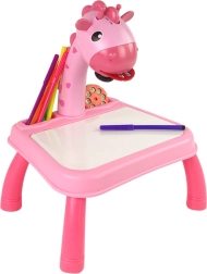 A rózsaszín, zsiráfos gyerek vetítős rajzasztal 24 motívumot vetít, megkönnyíti az átrajzolást és a rajztanulást. A csomagban 12 színes filctoll, füzet és szivacs található. Nem hiányzik a fény és a 12 dallam, a szárazon törölhető felület és az állítható élesség sem a gördülékeny, kreatív alkotáshoz.