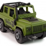 A zöld terepjáró könnyedén elszállítja a nagy hüllőt és kimenti a bajból. A járműhöz csavarok tartoznak, amelyek az egyes alkatrészeket rögzítik. A készlet része egy csavarhúzó is, amellyel az autó összecsavarozható és szétszedhető. A csavarok csavarásával a kisgyermek gyakorolja a kezeit, ami felkészíti a későbbi írástanulásra és fejleszti a kézfunkciókat.