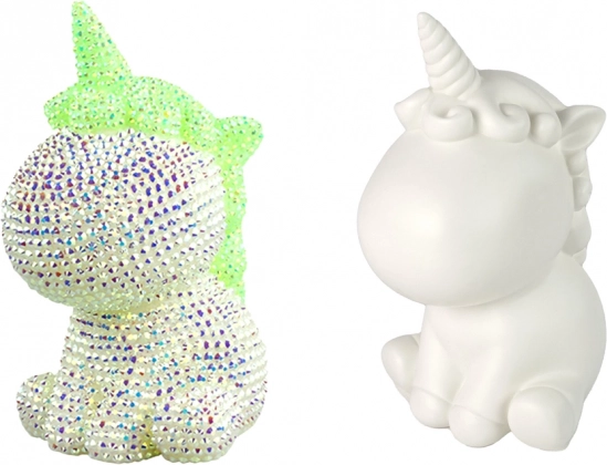 A készlet kétféle kristályt tartalmaz, amelyeket igényeid szerint díszíthetsz az egyszarvún.