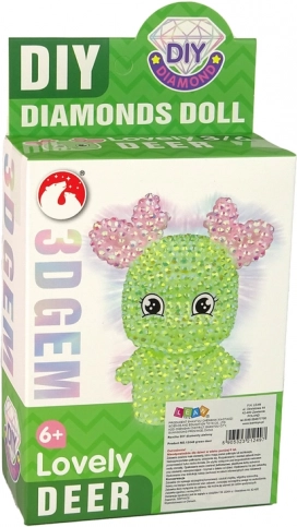 A szett tartalmazza a szarvas figurát, 2 színű kristályt, 2× ragasztót, tálcát, viasz applikátort és hegyezőt – csak nyisd ki és alkoss.