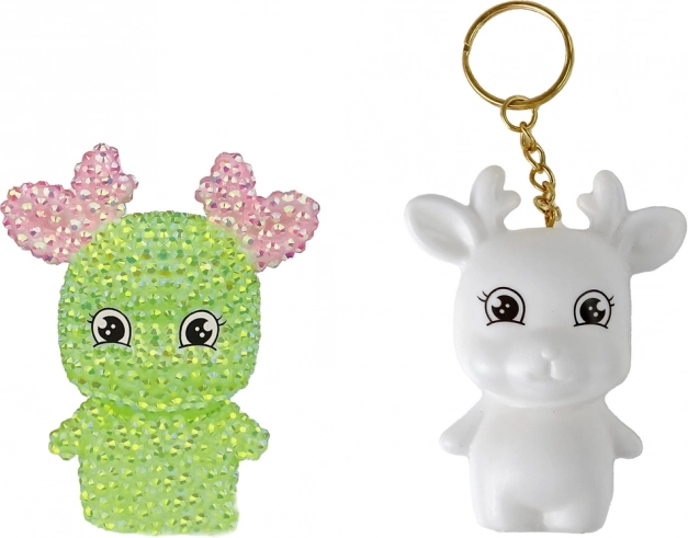 A csomagban két árnyalatú kristály található, így a szarvas megjelenését saját ízlésed szerint alakíthatod. A praktikus kulcstartónak köszönhetően a kész alkotás könnyen rögzíthető kulcsokra, hátizsákra vagy táskára, és stílusos kiegészítővé, illetve kedves ajándékká válik 6 éves kortól.