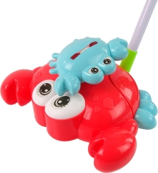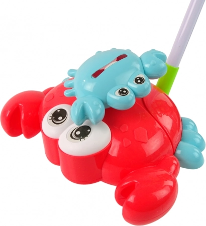 Az interaktív tolós rák játék nemcsak örömöt okoz a gyerekeknek, hanem stimulálja hallásukat és látásukat is. Amikor a gyerekek előre tolják a rákot, kellemes harang hangját hallják. Nagy piros rák kicsi kék rákkal a tetején, ami minden előre mozgáskor forog.