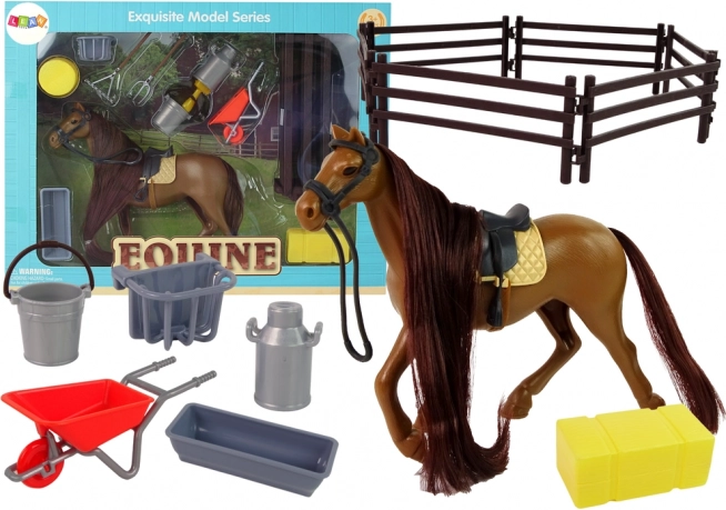 A lófigura nagyon realisztikus megjelenésű, és az összes komponens kiváló minőségű műanyagból készült, ami ideális a kisgyermekek kezeihez. A termék két színváltozatban kapható - fehér ló és barna ló, ami növeli a játék lehetőségeit.