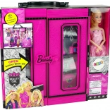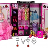 Lépjen be a divat világába ezzel az öltözőszekrénnyel, amely lányoknak készült, akik szeretnek babákkal játszani, öltöztetni és stílusokat alkotni. A szekrény világos rózsaszínű, üveges dupla ajtóval, amelyeken keresztül beláthatunk.