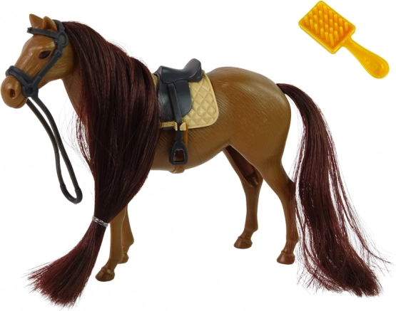 Fésülhető lófigura valósághű kinézettel és barna sörénnyel kiváló kiegészítő a kis lórajongók számára. A gyerekek élvezhetik a sörény fésülésének lehetőségét, miközben fejlesztik képzelőerejüket és finom motorikus készségeiket.