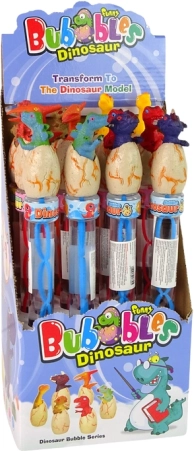 Minden palack nyújtott formájú, kupakja pedig tojásban lévő dinoszaurusz alakú. 6 féle változat érhető el (pterodaktil, T‑Rex, triceratopsz, sztégoszaurusz, brachioszaurusz, ankyloszaurusz) különböző színekben. A folyadék színtelen, és a biztonságos használat érdekében CE/EN 71 tanúsítással rendelkezik.