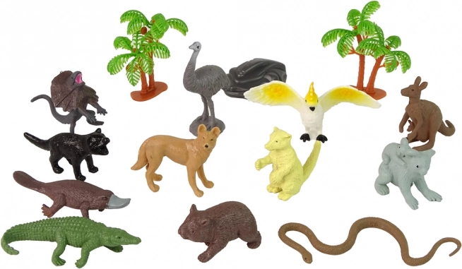 A készletben kenguru, koala, krokodil, emu, papagáj, kígyó, kacsacsőrű emlős, vombat, tasman ördög, gyík, sivatagi róka, továbbá 2 fa és egy szikla található – minden, ami egy saját ausztrál világ megalkotásához kell.