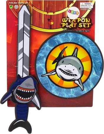Az EVA minőségű habszivacsból készült lovagi szett ideális otthoni csatákhoz és jelmezes játékokhoz. A kardot és pajzsot díszítő cápadizájn lenyűgözi a kis kalandorokat, és fejleszti képzelőerejüket, bátorságukat és a fair play szellemét.