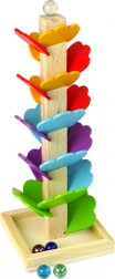 A fa játékok időtállók, tartósak és ideálisak a világ első felfedezéséhez. Ez a golyófa lehetővé teszi a gyerekek számára a pontosság gyakorlását a levelek illesztésekor, miközben formákat és színeket különböztetnek meg. Elég a golyót a torony tetejére helyezni, és figyelni az egyenletes gurulását a színes leveleken lefelé.