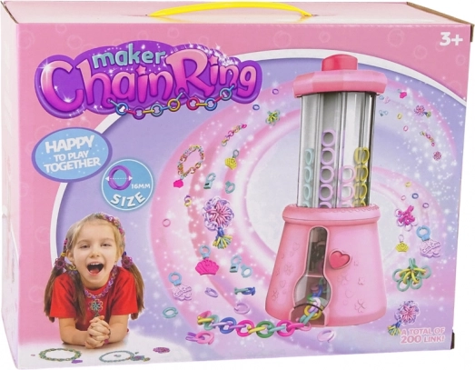 A készlet tartalmaz minden szükséges elemet végtelen ékszerkombinációk készítéséhez. A gyerekek nemcsak karkötőket és nyakláncokat, hanem virágokat és brossokat is készíthetnek. A fő elemek közé tartoznak az útmutató, a készítőgép, ékszerfüggők és színes gyűrűk tízféle színben, például fehér, piros, rózsaszín, kék és további árnyalatok.
