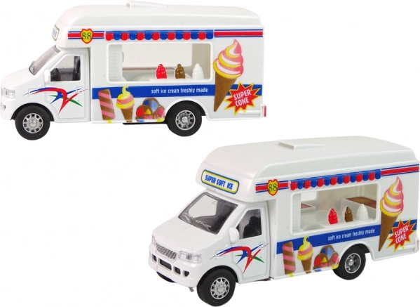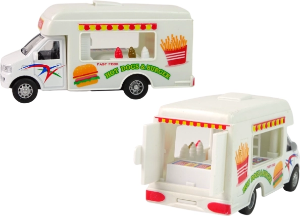 A készletben két camper modellt talál. Az egyik fagylaltozóként, a másik gyorsétteremként működik. Legyen ön a vezető, aki minden gyermeket megörvendeztet ízletes ételekkel. A kamionok fehér színűek, és minden modellhez egyedi matricákkal vannak kiegészítve.