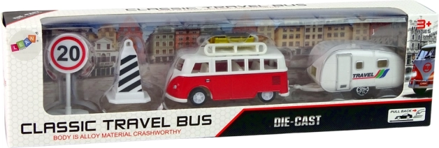 Ez a készlet legkiválóbb minőségű műanyagból készült, minden részlet precízen kidolgozott, hogy valósághű modellt kapjunk. A nagy busz egy karaktercsoportot képes befogadni, a belső tér pedig élethűen kidolgozott. Egy kis horog lehetővé teszi a karaván rögzítését, amely menedékként szolgál az utazások során. A mellékelt közúti táblákat az útvonal mentén lehet elhelyezni. A készlet minden részét kombinálhatod vagy külön-külön is használhatod a gyermek kívánsága szerint.